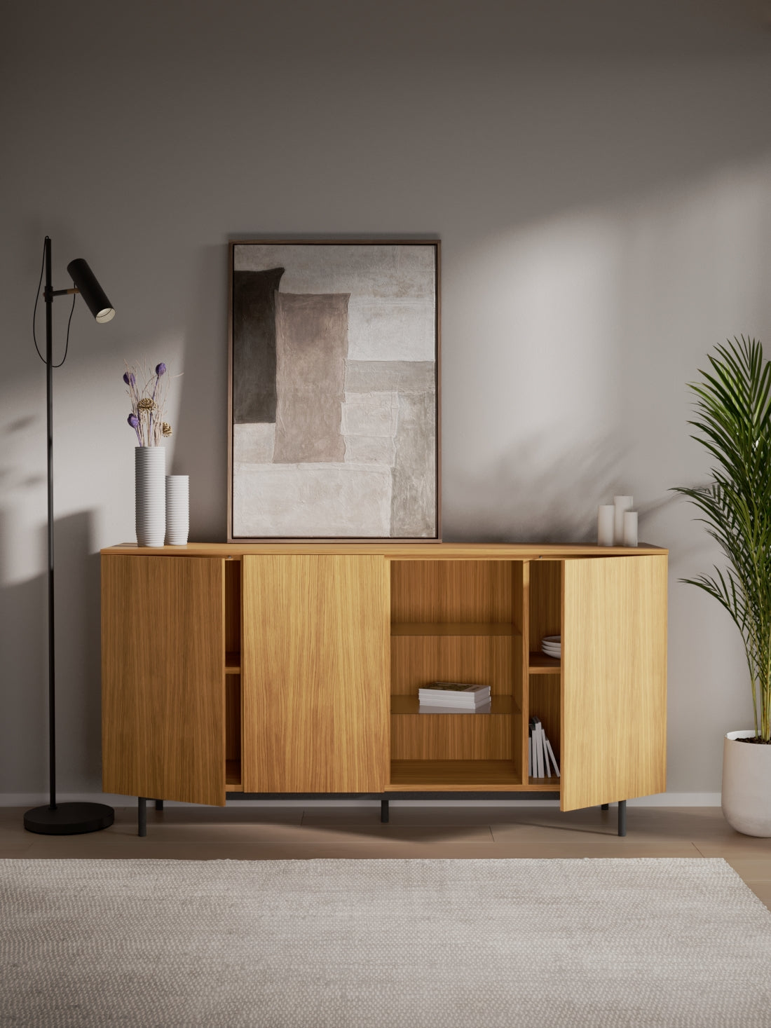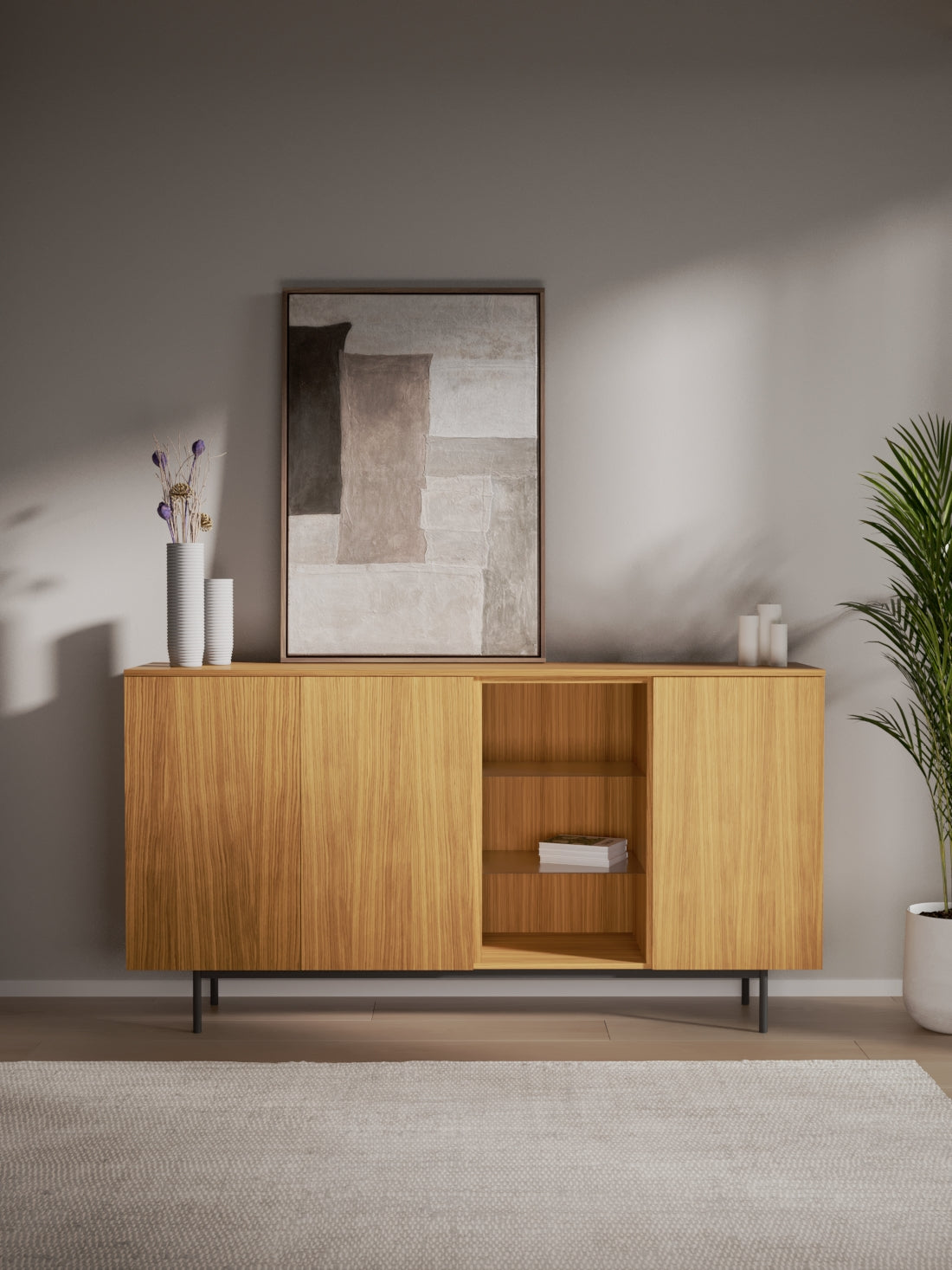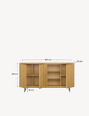 Aparador Leiva 3 puertas de roble natural con 2 estantes diáfano centrales en cristal parsol 180 x 93,9 cm