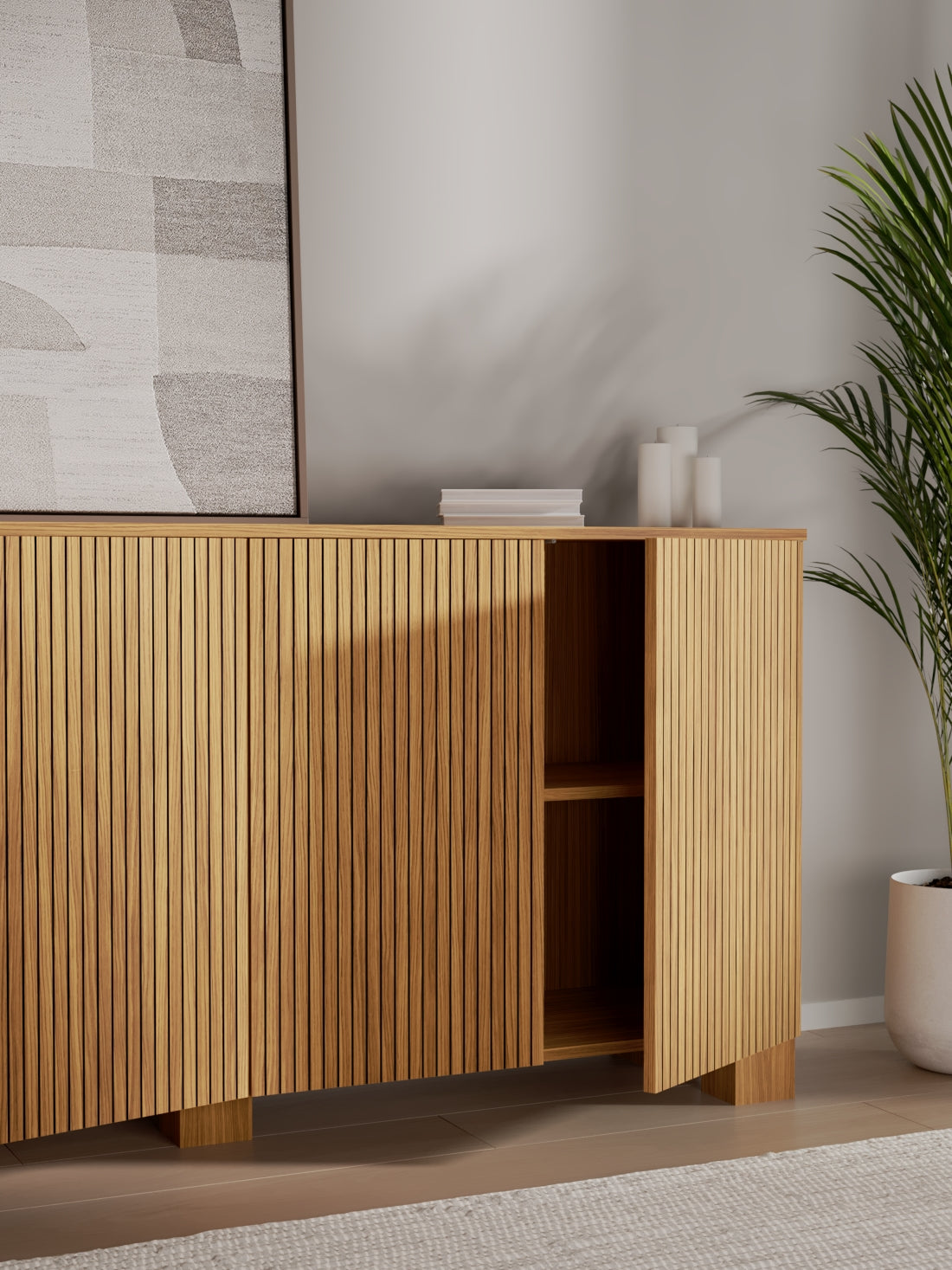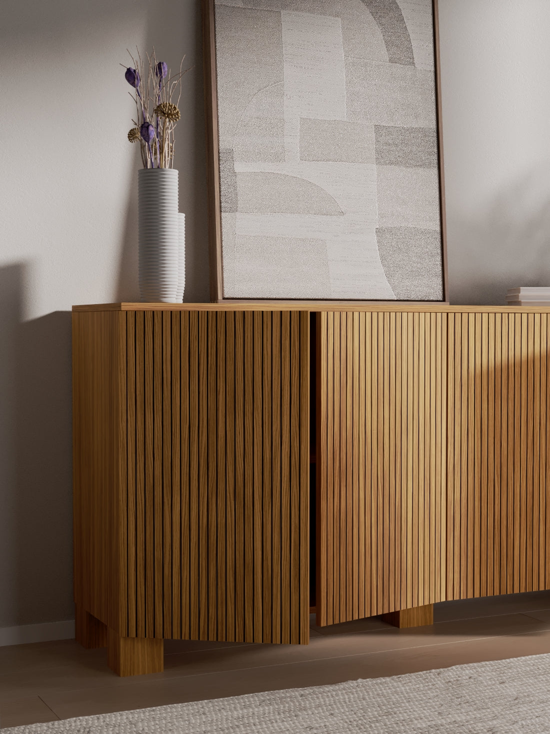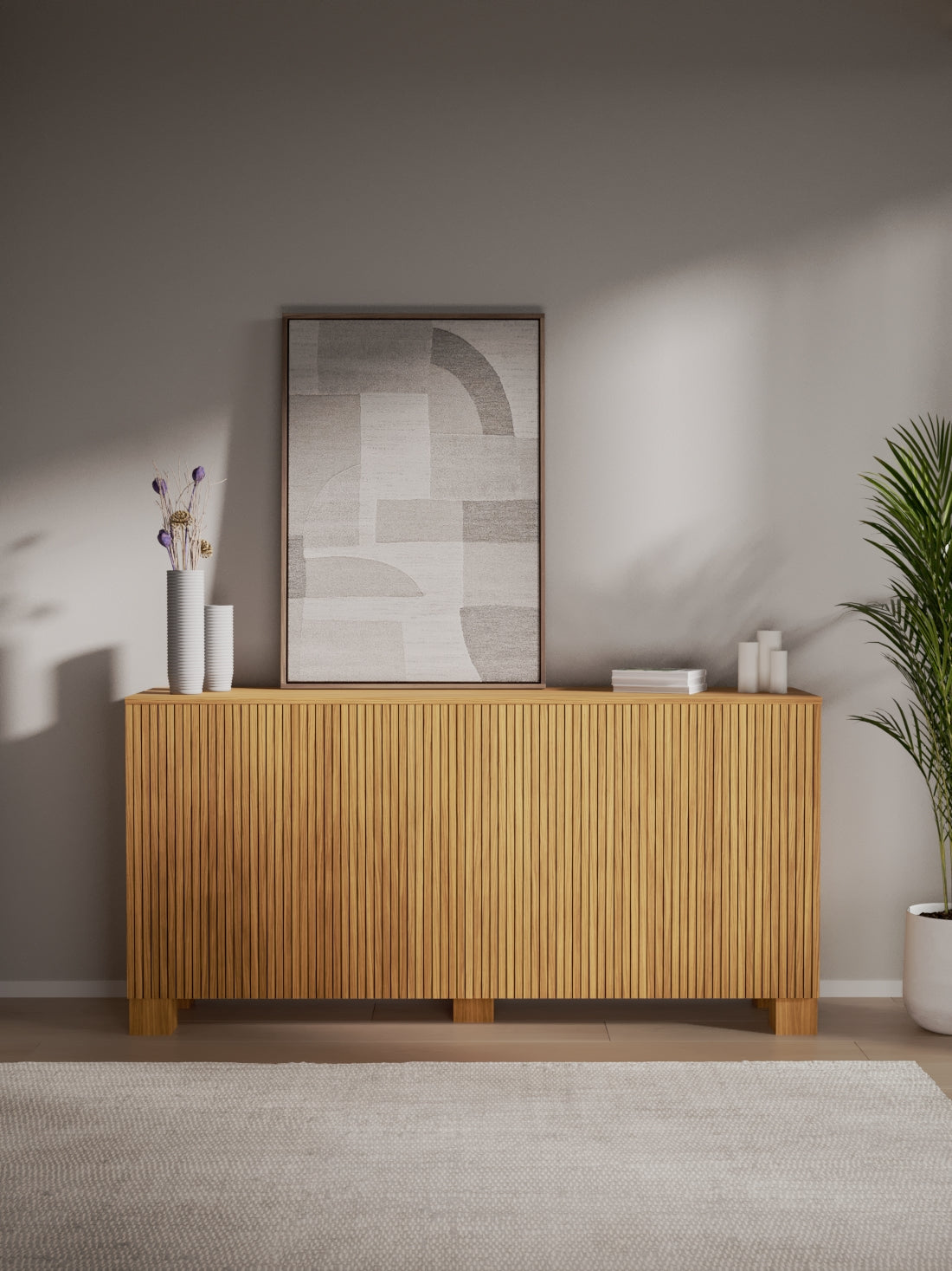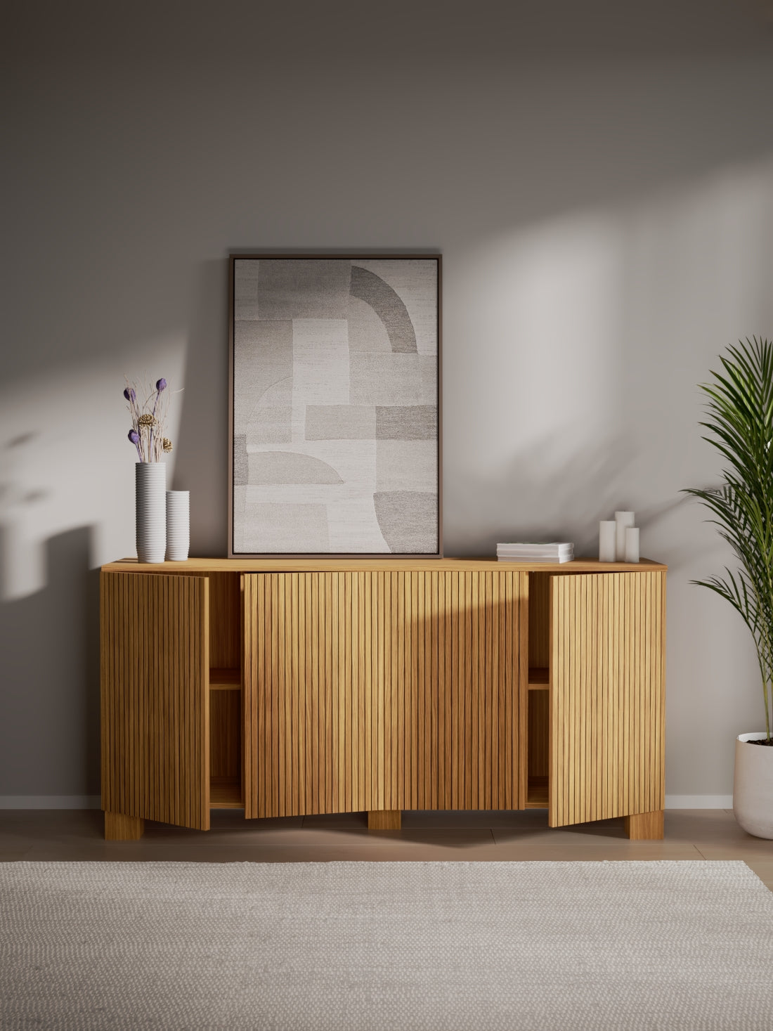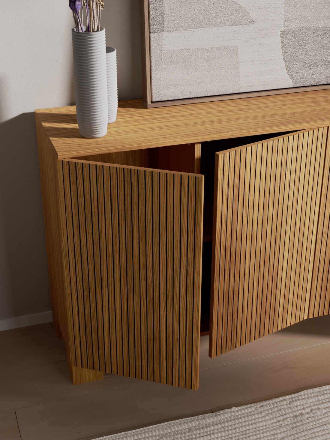 Aparador Lumo 4 puertas de roble natural con acabado boreal 180 x 88,9 cm