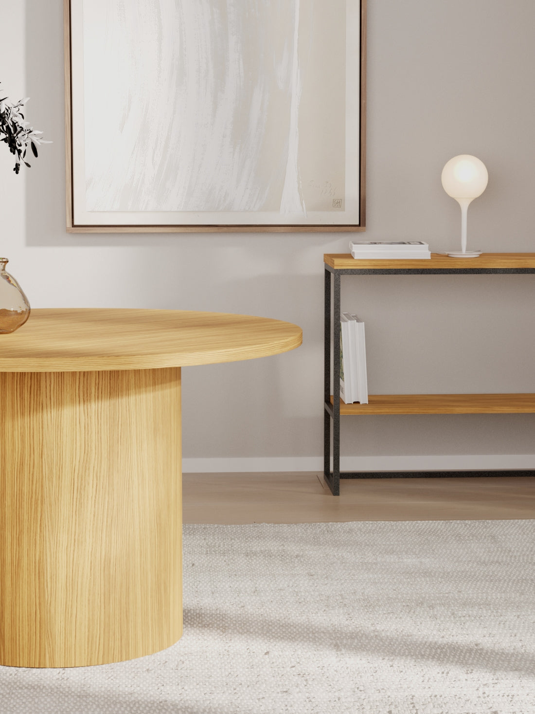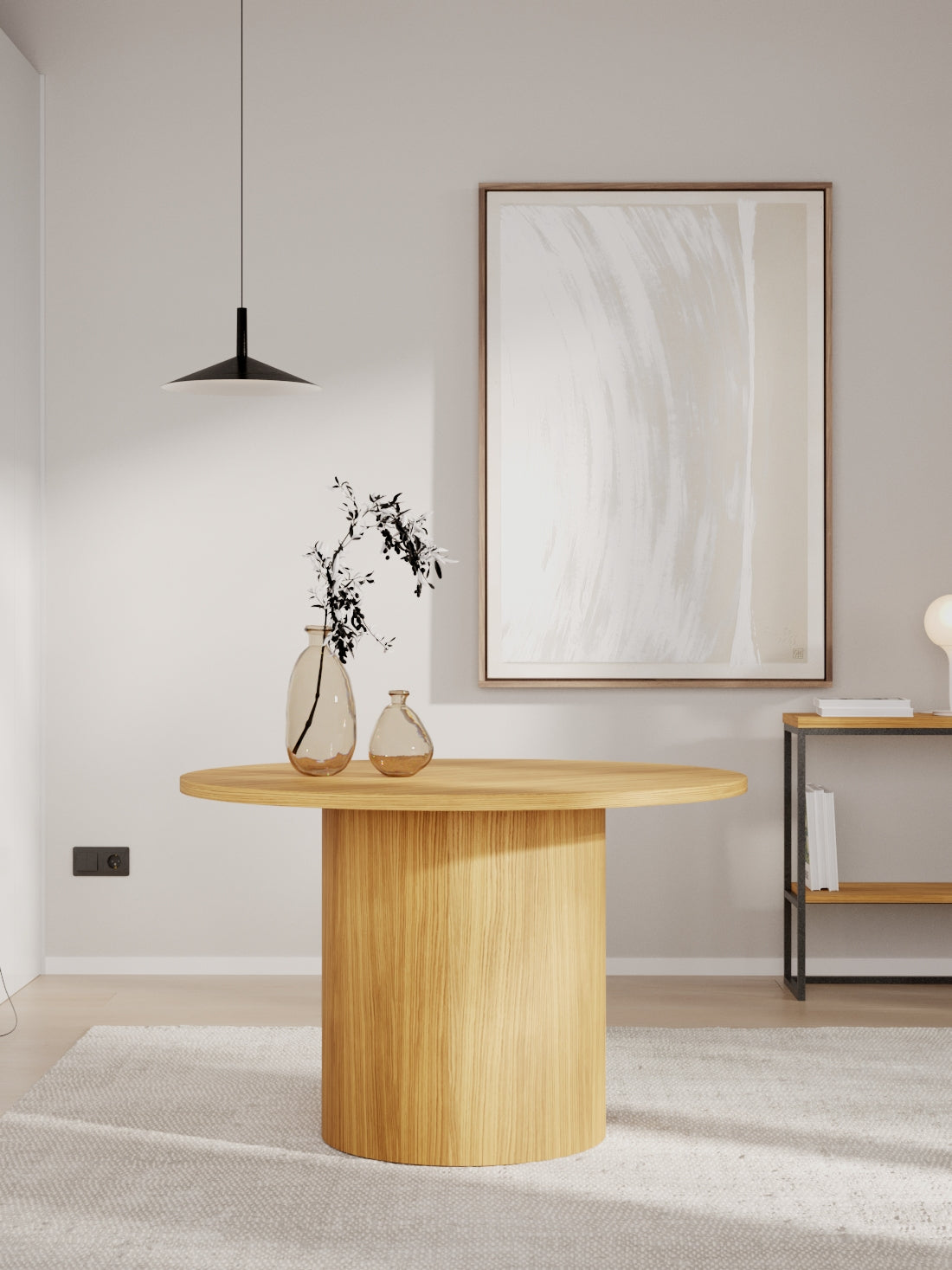 Mesa de comedor Aura redonda de roble natural con base cilíndrica 120 x 75 cm