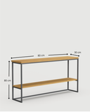 Consola de diseño contemporáneo en roble natural sin nudos con estructura metálica antracita. Una pieza ligera y equilibrada pensada para espacios de paso y recibidores.