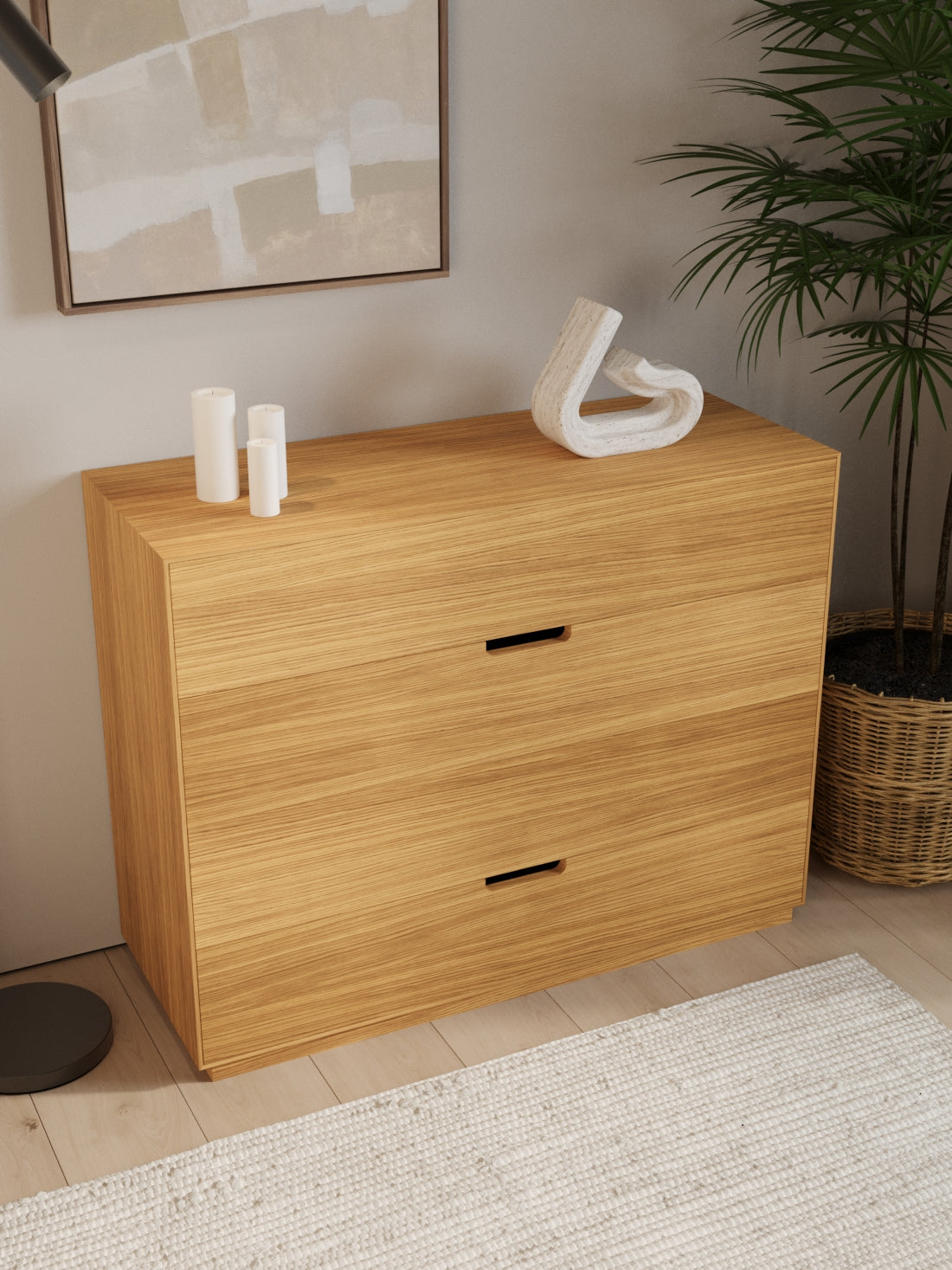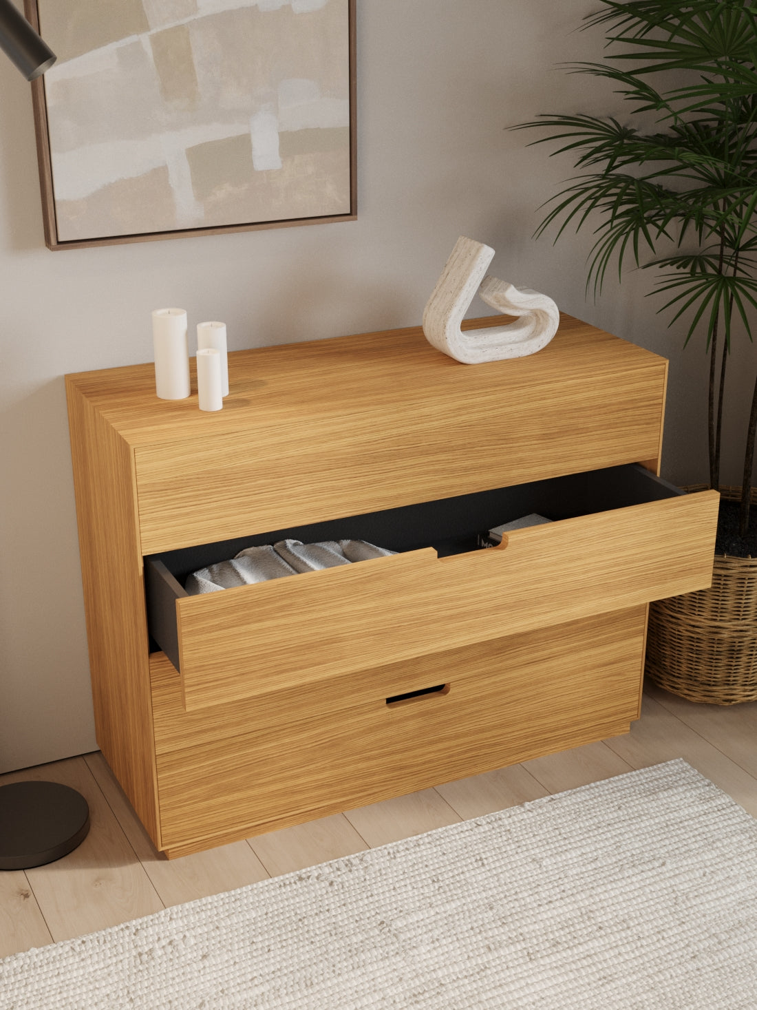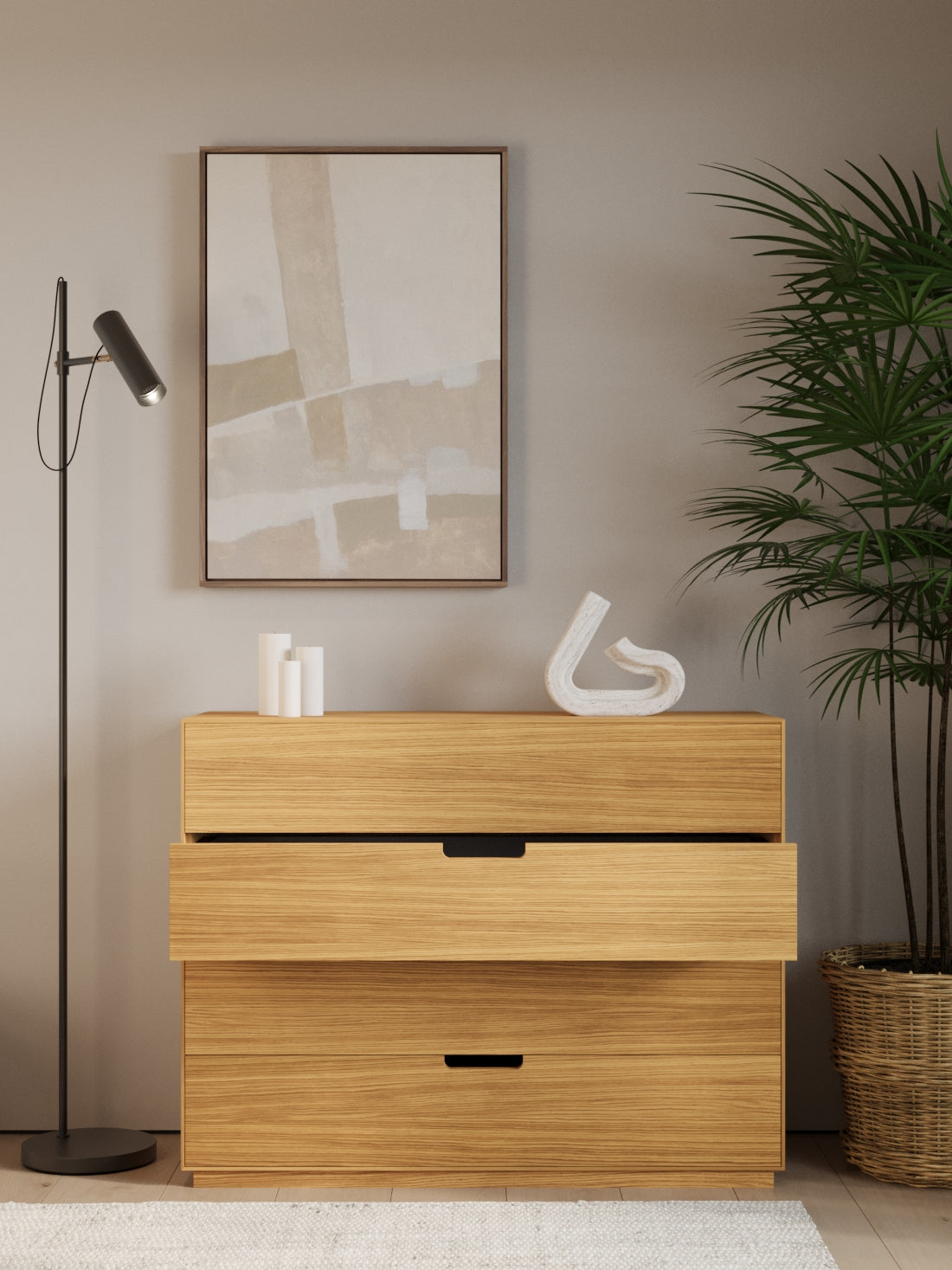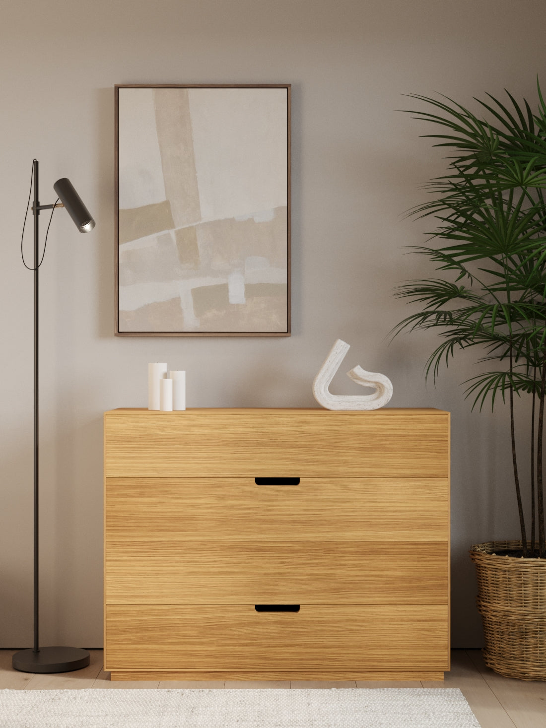 Cómoda Solara 4 cajones de roble natural con sistema push y tiradores en forma de media luna 100 x 74 x 40 cm