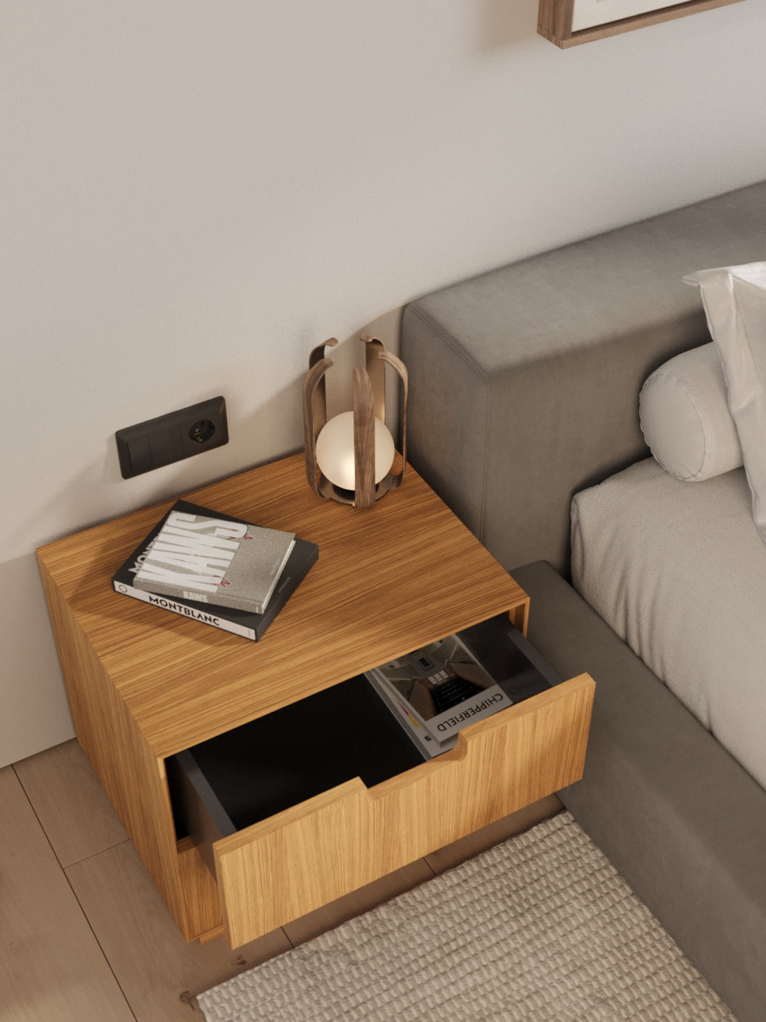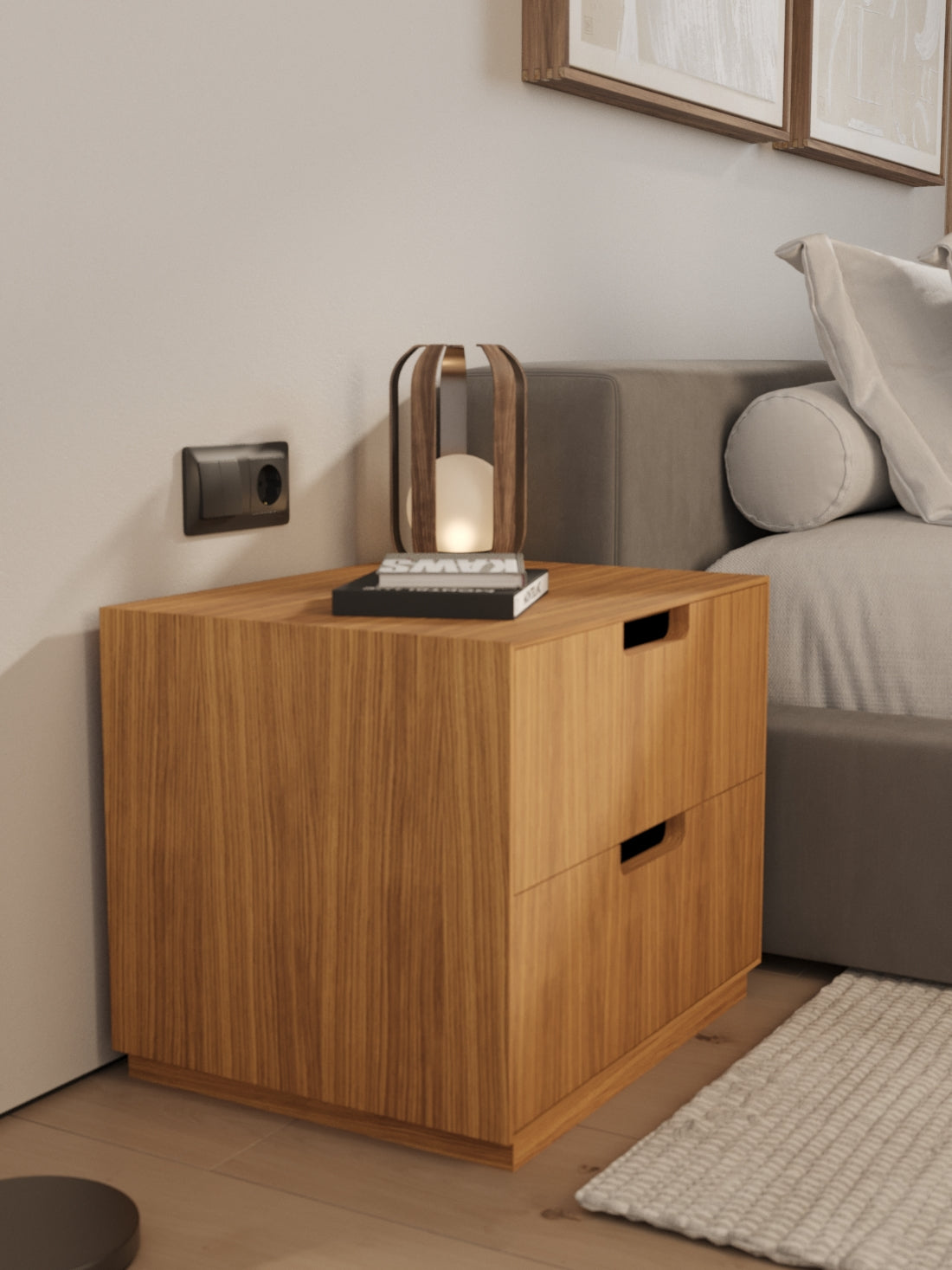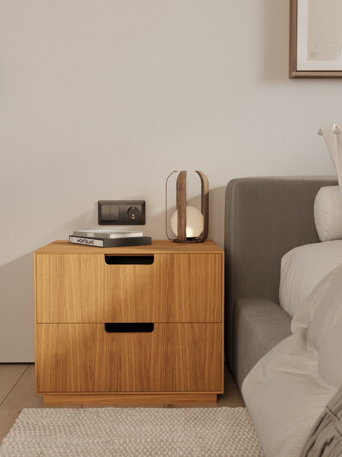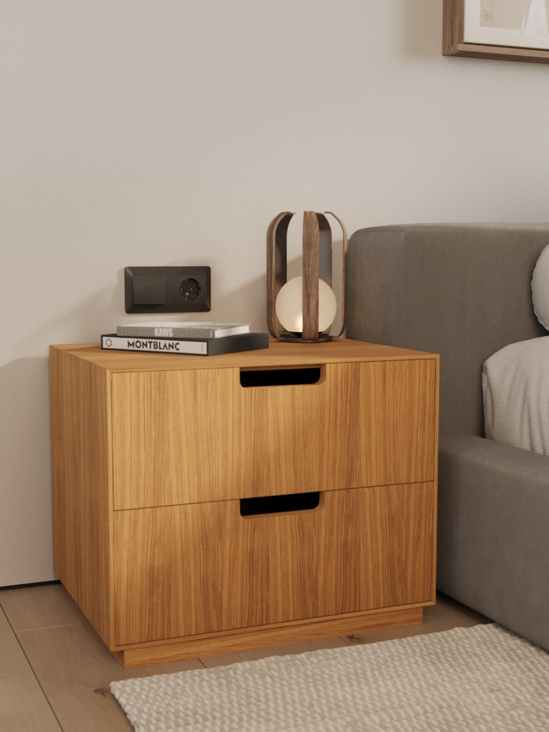 Mesita Tyrin de 2 cajones en roble natural con tiradores en media luna 50 x 48 cm
